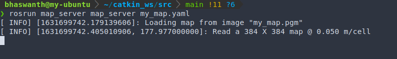 Enter the following command to launch the map_server node in order to provide the map information: rosrun map_server map_server <map_name>.yaml