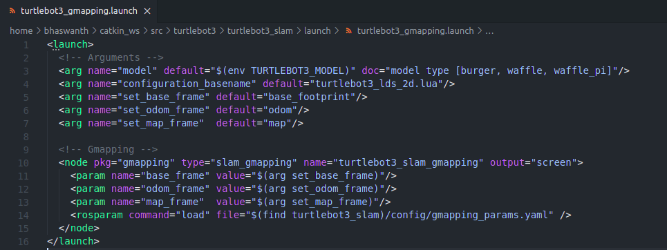 - This launch file starts the turtlebot3_slam_gmapping node from the gmapping package.